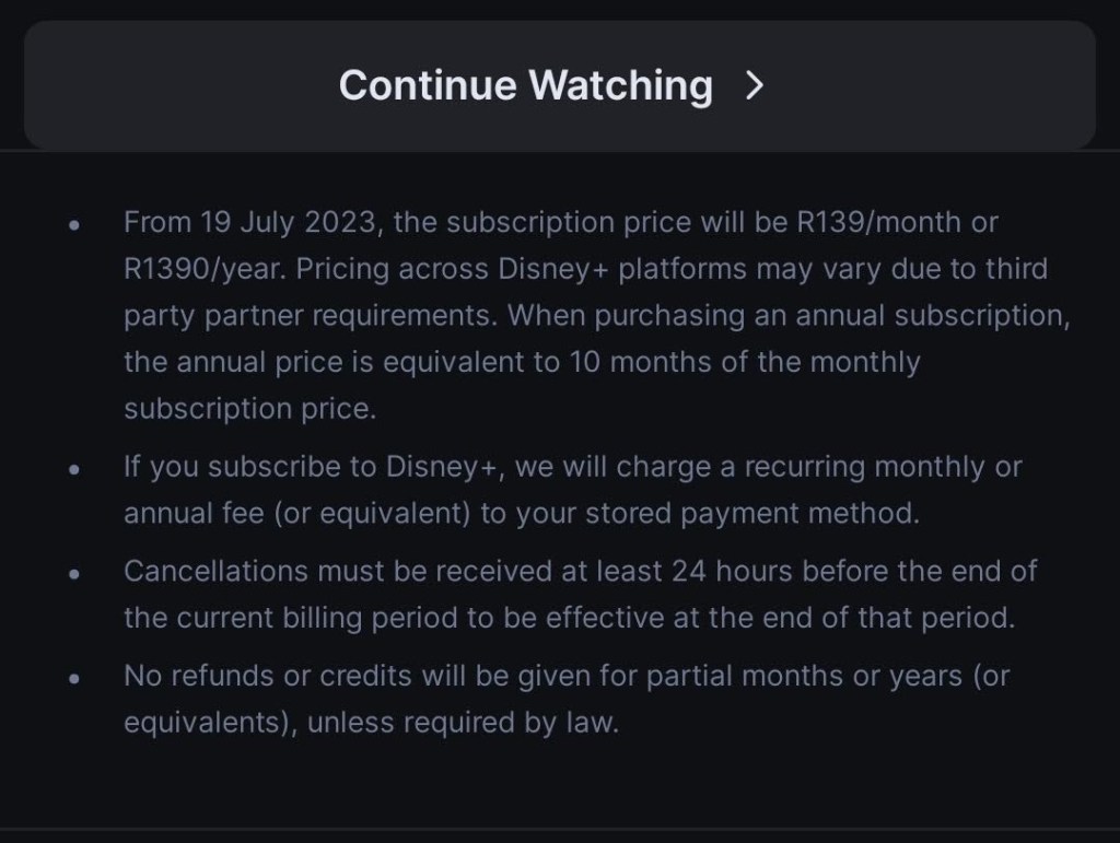 Annual and monthly subscribers who get their subscription directly from Disney or with an “Add to Bill” functionality should receive an SMS notification.